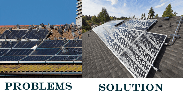 Rooftop solar panels create an ideal environment for pigeons and other pest birds to nest and roost. The panels provide shade from the hot sun, security from predators, and an easy in-and-out vantage point for birds. What’s more, birds can be incredibly persistent, especially if they’ve nested under solar panels the previous season. Since most solar panels are usually just 8″ off the roof deck, removing nests and droppings can be a challenge.